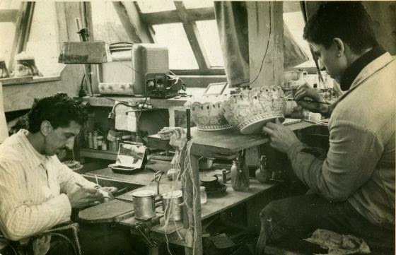 En ese lugar (que muestra la fotografía) pasé horas y horas aprendiendo un poco a decorar porcelanas, guiado por él y por su hijo mayor, que creo se llamaba Rafael.